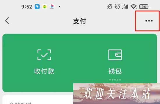 在支付页面的右上角,找到并点击三个点的图标,以进入更多设置选项。