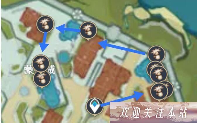 友情提示:由于蒙德城内区域的分布较多,为了方便采集,推荐规划两条不同的路线。