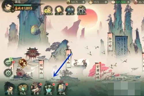 1.打开斗诡,主界面下方点击武器按钮,如图。
