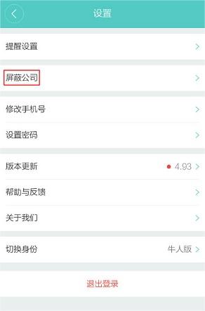 2、在“设置”界面,我们在功能列表中点击选择“屏蔽公司”选项;