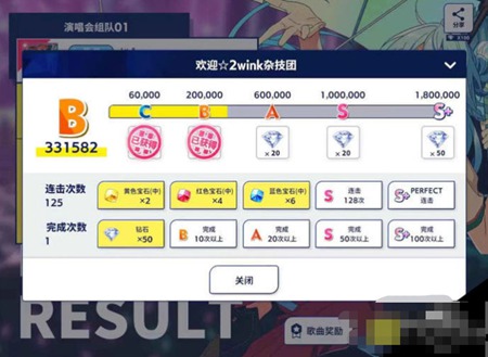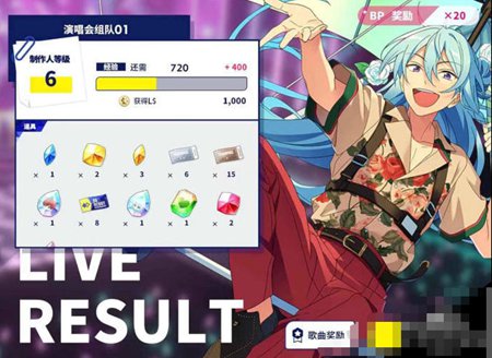 点击开始演奏歌曲,尽量自己完成,连击度和分数都会比较高,这样获得的经验道具都会比较多。演奏完成后我们就可以获得相应的奖励