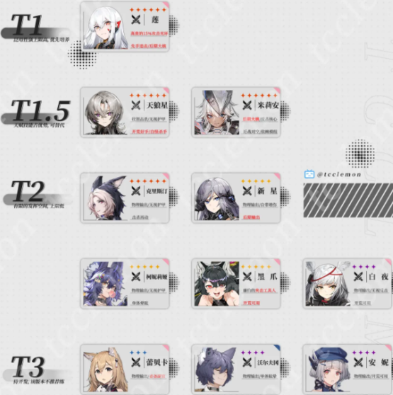银河境界线突击角色排行是什么?突击是银河境界线中的持续输出职业,也是后期职业,近战输出职业多数角色为后期大核,持续输出的核心单位,特别依赖于模组,极高的伤害上限,特点是具有极佳的速度成长,能有效触发追击,晋升后进一步的提高机动性,职业被动技能·协调攻击为攻击被夹击的目标时,攻击和速度提升百分之二十,晋升后职业被动·再移动为攻击余移动力,可以再次移动,目前普通攻击类型为物理,榜单中t1代表泛用性强上限高、优先培养,t1.5代表天赋技能占优势、可替代,下面小编就给各位小伙伴分享一份银河境界线突击角色排行榜,大家可以参考参考,更多银河境界线游戏攻略可以到下方相关文章查询,有用就收藏下来吧。