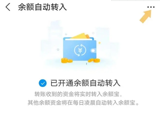 点击进入“余额自动转入”选项,在弹出界面的右上角找到“三个点”。如下图: