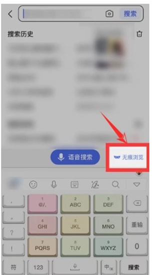在手机上进入百度主页后,通过点击搜索框就可以找到无痕浏览的开关了.