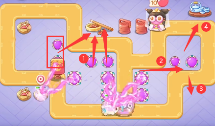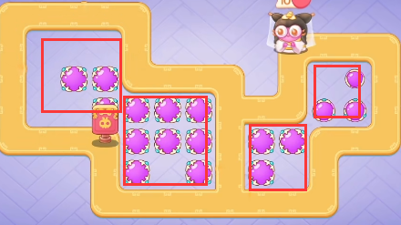 4、放置炮塔如图所示,本关全部使用魔法球即可完成本关。