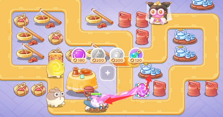 1、开局放置魔法球开图,当跑车兔跑过来我们先清理怪。