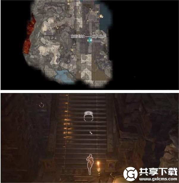 2、来到上面平台后,在一处断崖处跳过去,继续向着台阶上走。