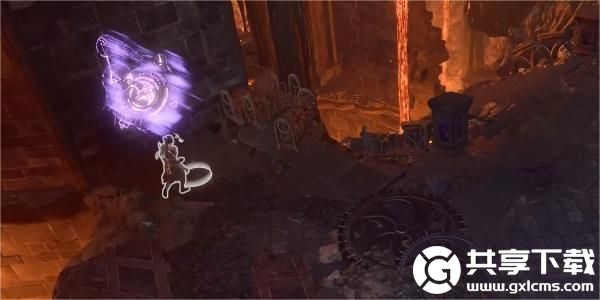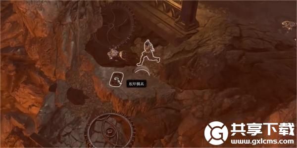 5、往传送阵左边继续探索,在一处断崖处找到一具骸骨,在骸骨的身边找到道具【板甲模具】。