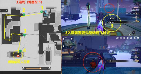 (2)然后去下图【工造司】空中星搓上,找【好心的卜者】对话,利用下图位置的入画装置飞过去