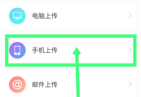 最后一种是邮件上传,可以用电脑或者手机发送邮件,点击最下面的邮件上传选项。如图所示