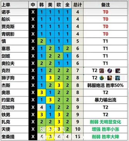中路:龙王(T0重做) 强势登顶)、安妮(T0增强 强势登顶)