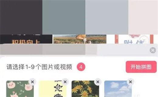 2.第二步:在相册中,选择四张需要拼成长图的图片,单击“开始拼图”按钮。