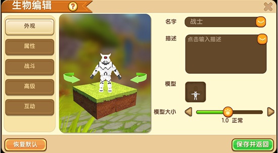最后按照自己的喜好,为微缩生物设置自定义的大小、属性、战斗、特性和互动对话。