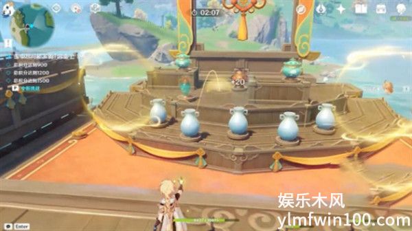 3、玩家站在指定位置,将手中的物品投中容壶中即可。
