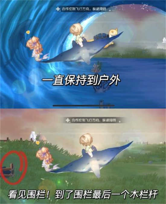 5.当看见左上角鸽子和云熊碰在一起后,立马一起移动乘坐器靠蕞右边