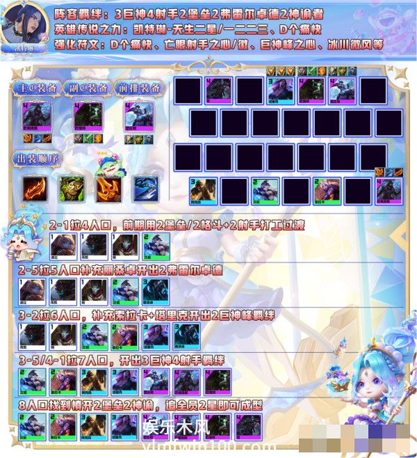 3巨神峰4射手2堡垒2弗雷尔卓德2神谕者。