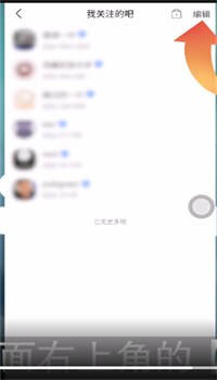 3.进入到我关注的吧界面后,点击界面右上角的【编辑】,再点击【删除】即可。