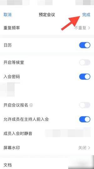 第四步:根据需要设置好会议要求,点击右上角“完成”。