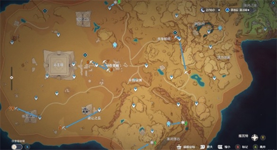 分布图:绿色文字=地上残页=六角星标记 橙色文字=地下残页=锄头标记