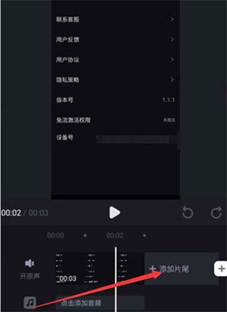 5、进入设置界面关闭【自动添加片尾】选项开关;