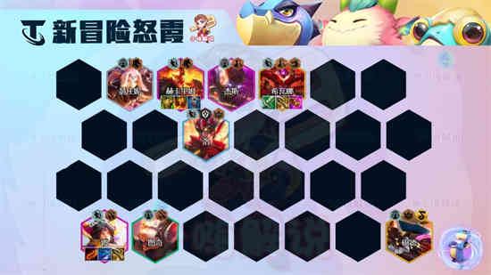 3阶段:3-2拉6人口,如果有呲呲优先上呲呲开出5冒险羁绊。呲呲的加入能够完美契合阵容前中期过渡,希瓦娜和杰斯/赫卡里姆的装备都可以给呲呲打工。如果没有呲呲,可以补充任意一前排。