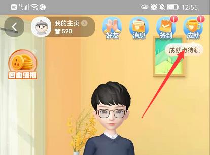 3、进入后,点击右上角的成就。