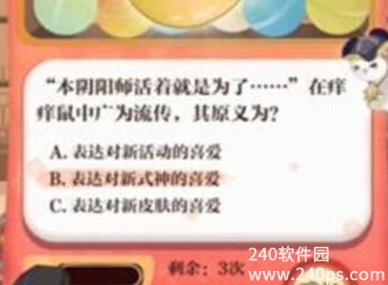 4、“本阴阳师活着就是为了……”在痒痒鼠中“为流传,其原义为?