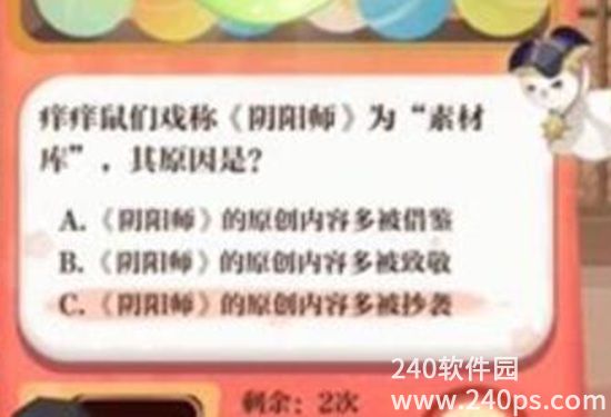 9、痒痒鼠们戏称《阴阳师》为“素材库”,其原因是?