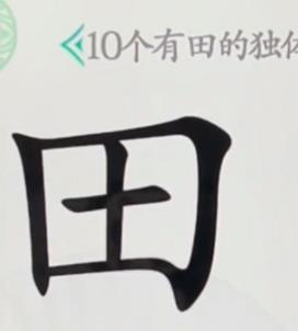 汉字找茬王写出10个有田的独体字通关攻略汉字找茬王这个游戏是一个关于文字的闯关益智游戏,这个游戏其中有一个关卡叫玩家们写出10个有田的独体字,那么就是要大家写出10个含有田字的文字才能通关,很多玩家们平常见到的文字应该很多,从认识的汉字中去找出10个有田字的文字应该还是可以找出来的,但是一时之间要想起来可能还是有点困难,毕竟忽然之间叫大家想起10个还是有点困难,而且还得是独体字,那么如果大家想知道答案的话下面小编大家带来了汉字找茬王写出10个有田的独体字通关攻略,可以看看。
