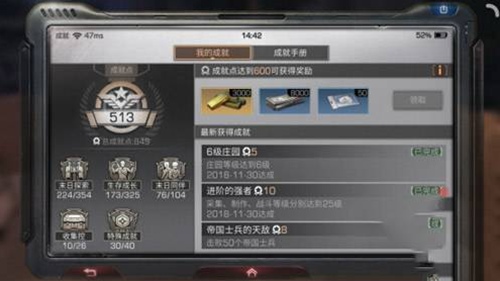 7.成就系统,以200成就分为一个阶段,每当达到阶段分值,即可获得金条。新币以及配方残页。