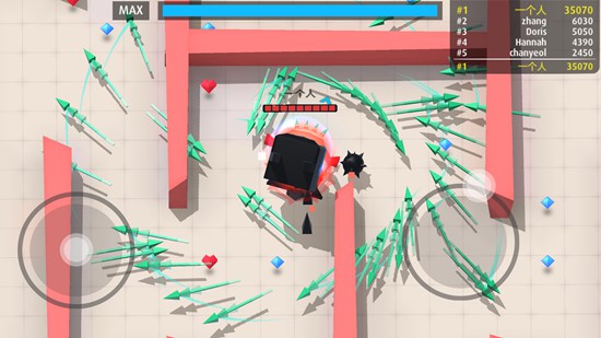 初始武器是激光,这个要和那把光剑区分开来。虽然激光射程实在有限,在游戏刚开始还是可以虐新手的,自带穿墙福利,后期升级[激光束][射程][三角射击][弯道轨迹]等搭配走位也还可以玩玩。