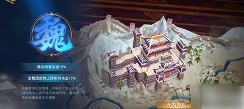 总结:魏国是骑兵驰骋的国家,针对骑兵有攻击力加成,同时在北方辽阔的地势中适合骑兵穿梭,部队的机动性很高,适合喜欢打仗的玩家。