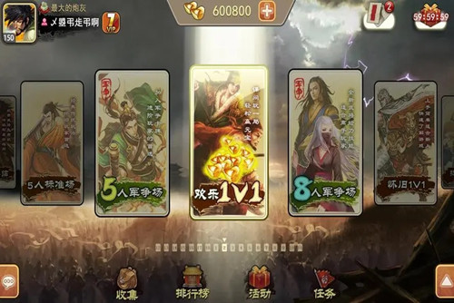 4、最快速欢乐1V1:单武将作战,快速竞技,随时随地快速杀一局,连胜赢元宝奖励。