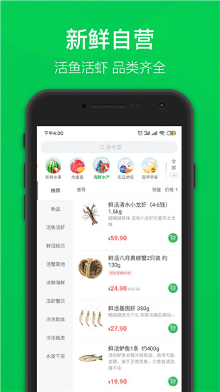 【品类齐全】 新鲜蔬菜、水果、肉禽蛋、米面粮油,水产海鲜、南北干货、方便速食。 应有尽有,厨房用品也能买到哦~