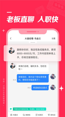 【求职更安心】与店长随时随地开聊,不用担心假职位、黑中介
