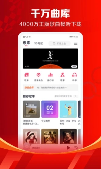 咪咕音乐安卓版下载是见证多样音乐娱乐趣味影视大片感受。咪咕音乐安卓版下载全新界面设计更多乐趣等你点播心动歌曲享受多样精彩声音殿堂享受哦。丰富的音乐内容精彩娱乐等你自由选择,每日好歌尽情期待,视觉音乐独家欢乐等你随时享受不一样的动人故事哦。轻松音乐等你随时享受多样互动乐趣影视瞬间哦。无损音乐更多大片风趣随时感受娱乐瞬间。爽快的音乐派对盛宴等你用心聆听更多最新歌曲专辑。百万正版音乐资源库,无损音乐品质随时为你用户感受更多心动的歌曲盛宴欢乐体验哦。 独家mV歌曲音乐欢乐等你下载享受独家娱乐心动体验哦。