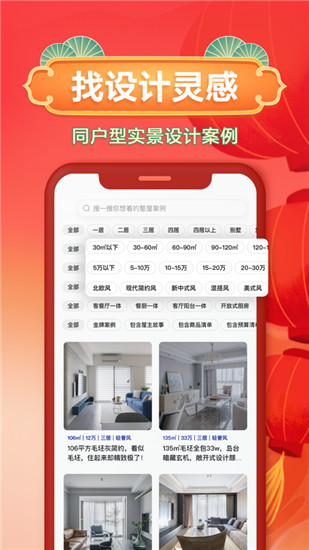 浏览千万屋主分享的真实装修案例和图集,按照面积、户型、预算、风格等条件,筛选出你想参考的理想装修设计,参考真实可靠的装修预算清单,快速找到适合自己的装修风格。
