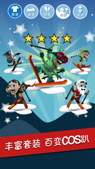在游戏中,不仅可以挑战夺命竞速,还可以滑动屏幕作出特技动作!根据单、双板和坐骑的不同,特技动作也会发生改变!向前、向后、向上、向下赶紧试试吧!