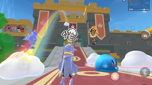 2、此外战场中不止战斗,您能在游戏中处处感受到欢乐与可爱。在这里您可以在皮皮球、滑索上唱、跳、开火等操作,也可以二段跳躲过敌人的精准射击;你可以套上泳圈在水中与别人钢枪;在被击倒后,您将变成哭嘤嘤的小肠肠。您也可以靠着加油动作扶起倒在地上的队友。