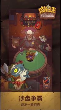 咸鱼之王下载最新版本这是一款无需氪金单纯凭借脑力比拼也能在游戏中成为强者的休闲创意手游,无忧创意爬塔亲身体验咸鱼花式翻身的趣味,玩家可以解放双手轻松挂机,不费力迎战终极的挑战来袭,丝毫无所畏惧书写着荣耀史诗奇遇。一呼百应的咸友们齐聚在这里,直接展开益智沙盘争霸对决,充分考验着各位玩家的头脑风暴能力。荒诞的游戏画风超越了其他游戏的好玩程度,可以说是日常摸鱼休息的不二之选了,多种游戏模式大幅度提升了整体的可玩性。不肝不氪佛系放置回合战斗体验,以策略为王构建出一个最强的组合阵容,陪伴着玩家一直游戏下去,上演一场不一样的逆袭之旅。玩家发挥自己天马行空的脑洞,带领着一众的咸鱼咸将们所向披靡一路奋战。屏幕前的玩家别再犹豫了,快来下载咸鱼之王下载最新版本吧。